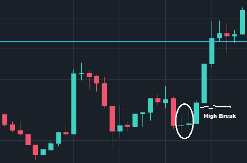 Enter the trade when the next candle breaks above the high of the second candle.
